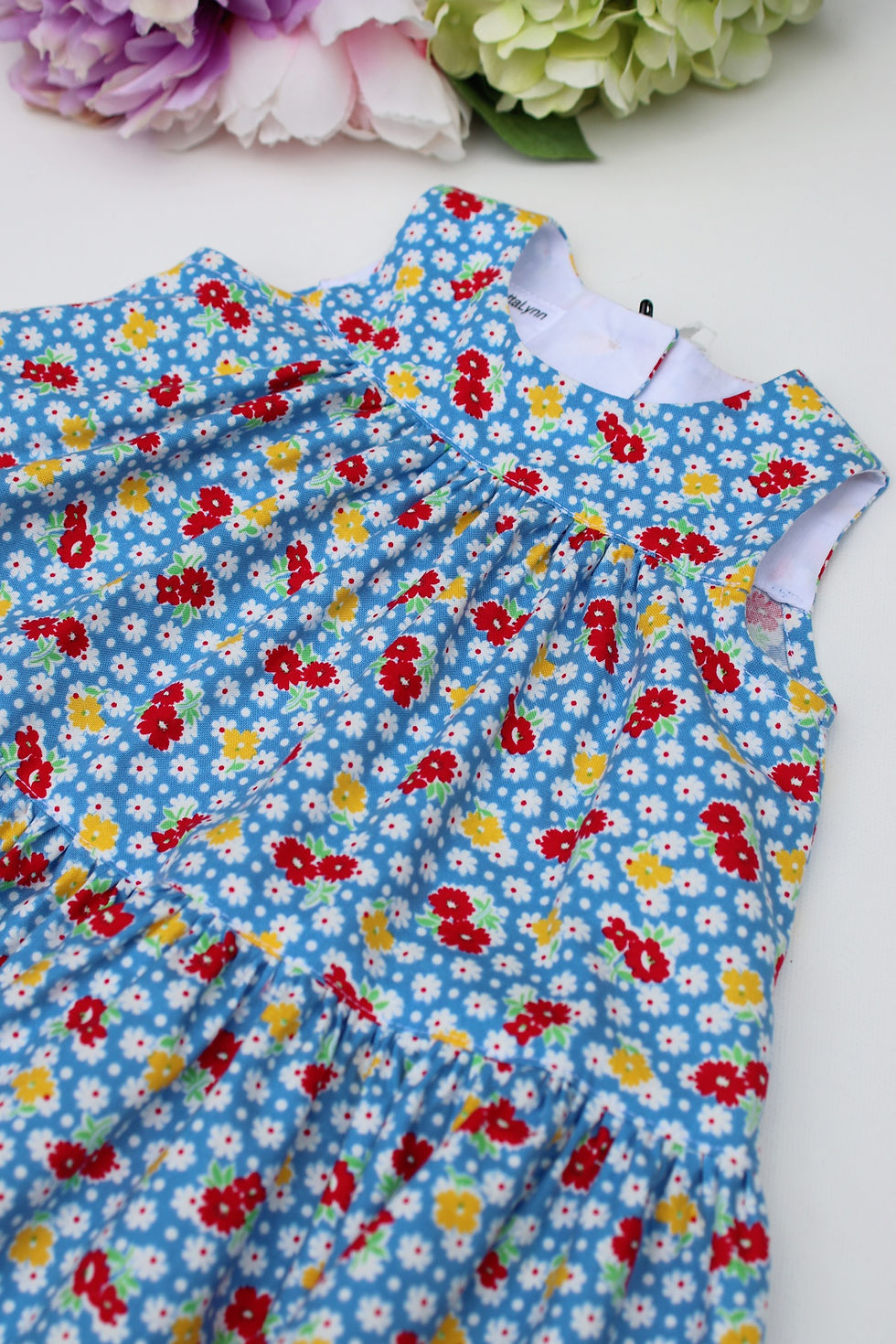 3-6 Months Blue/Red Flowers Flared Dress